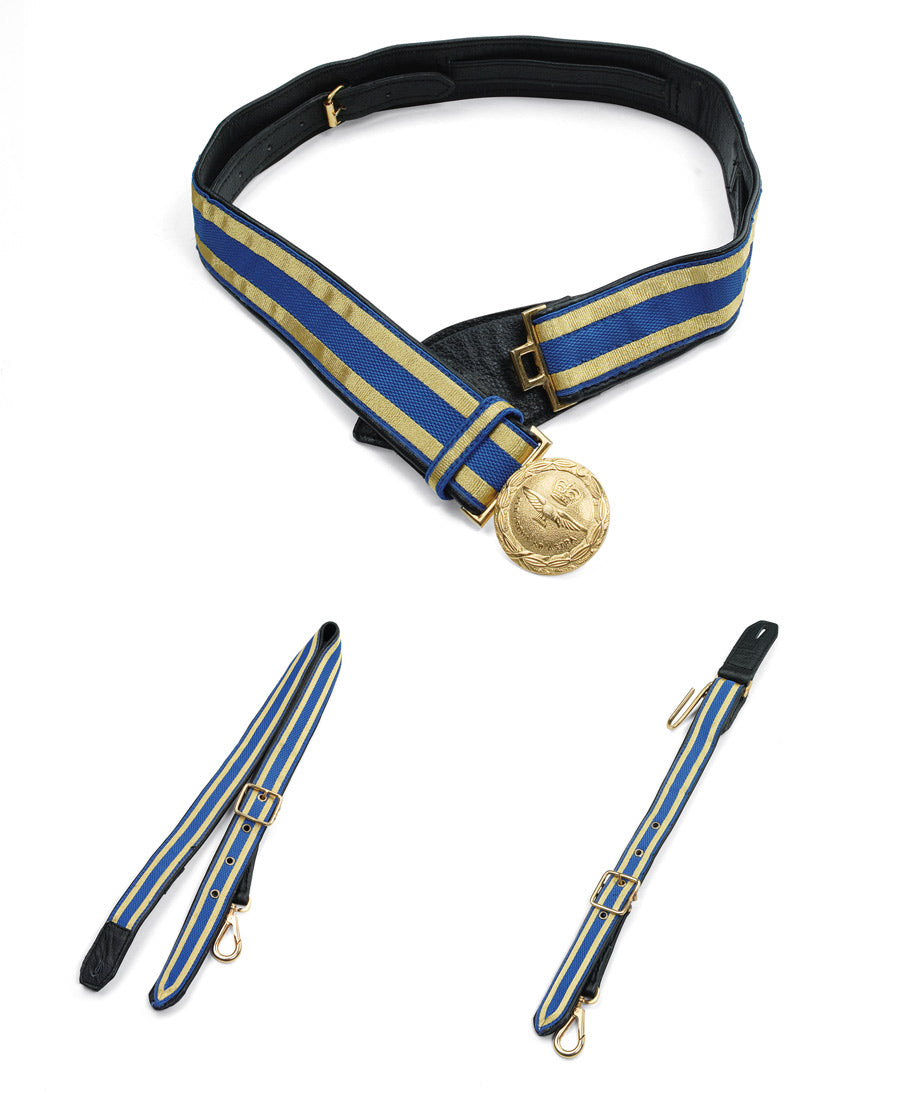 As per current MoD Specifications this blue and gold sword belt is worn by Officers Below Air Rank of the Royal Air Force.