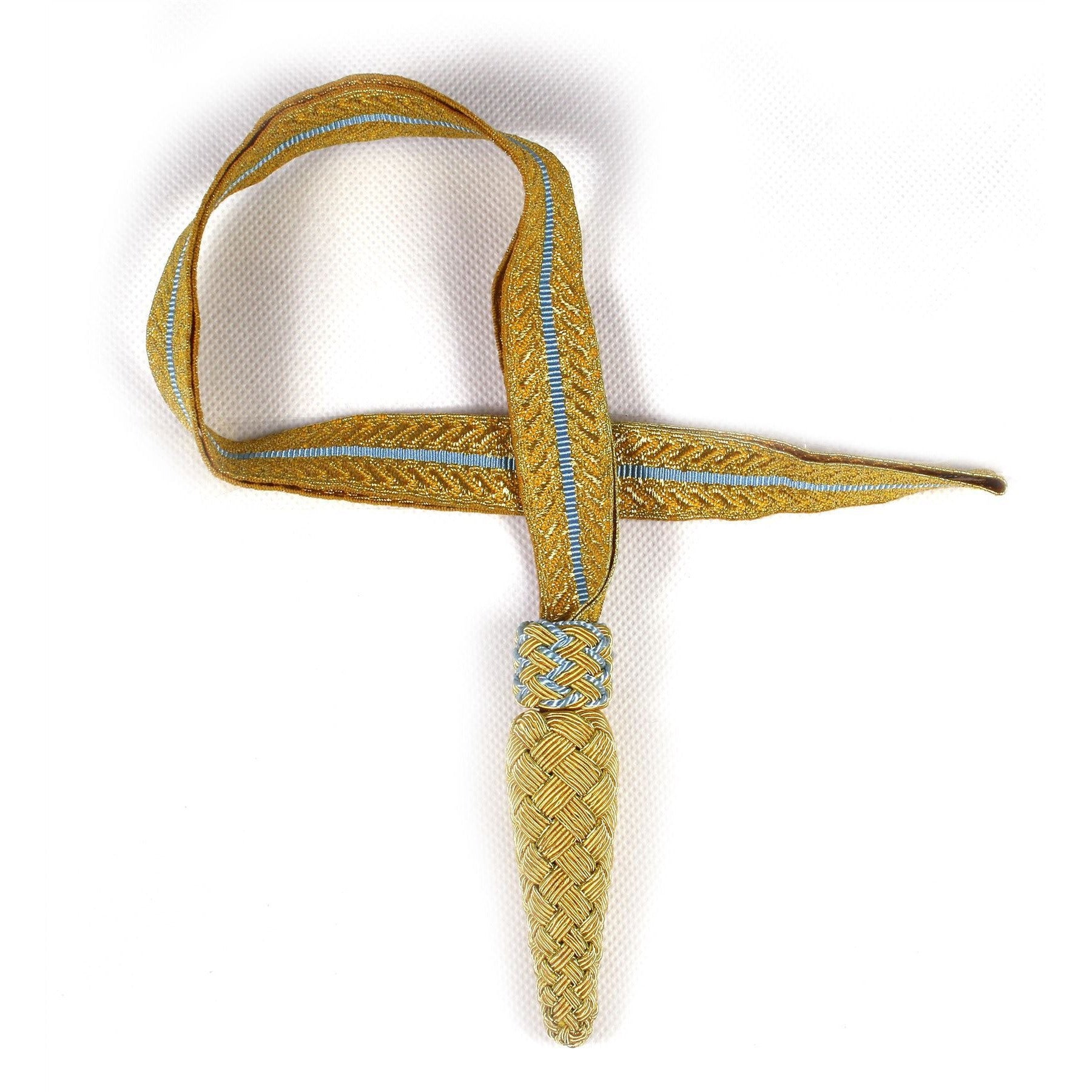 This gold and sky blue lace sword knot is used by Royal Air Force (RAF) Officers