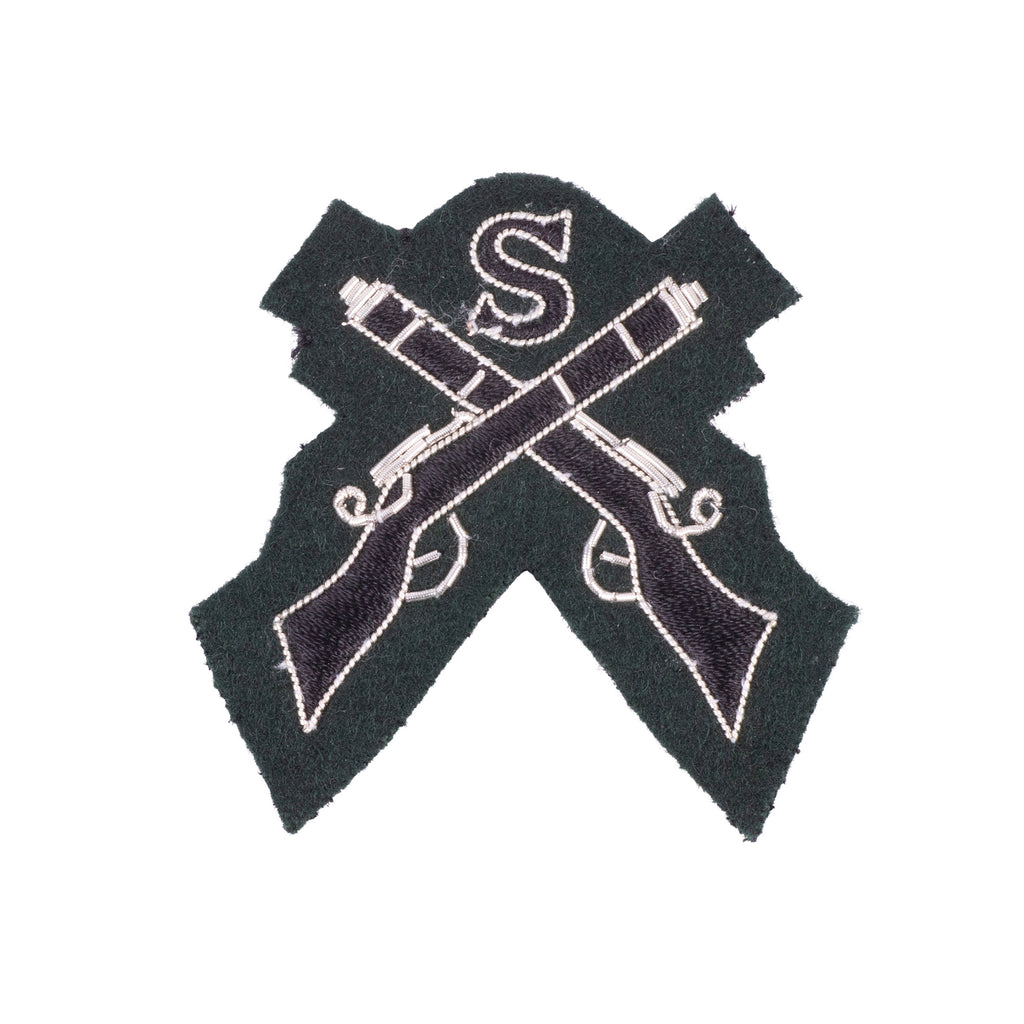 Rifles Mess Dress - Qualification Badge - Sniper (X Rifles & S) - Silver on Rifle Green